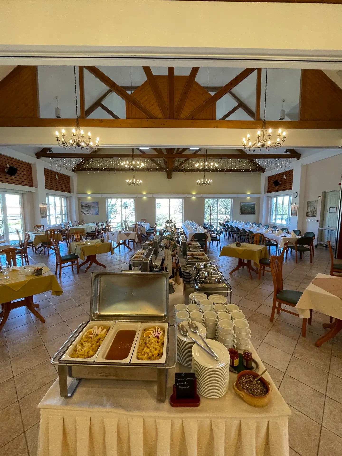 Favory éttermünk az a’la carte étkezések, gyertyafényes vacsorák mellett az ünnepi fogadások, esküvők helyszíne. Az étterem teraszáról különleges kilátásban gyönyörködhetünk: a tó mögötti dombon kiváltságos lovak élvezik a szépalmai élet páratlan nyugalmát, a háttérben pedig a Bakony legmagasabb csúcsa, a Kőris-hegy látható. Szebbet aligha lehetne festeni! A terasztól néhány lépésre, a tavacska partján lévő grillterasz szép idő esetén csapatépítő főzés vagy grillezés, télvíz idején vidám, forralt boros események helyszíne.